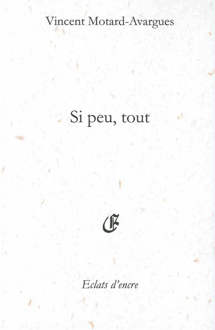Avant de commencer la lecture de ce recueil de poèmes, je voulais, car je l’ai omis lors de mon dernier article sur Pierre Cendors, remercier vivement Sandrine Fay, l’éditrice d’Eclats d’encre. Pour sa disponibilité, tout d’abord, car il est toujours agréable de correspondre avec une éditrice attentive aux lecteurs qui la sollicitent, allant même jusqu’à suggérer des lectures qui font mouche, tel ce Si peu, tout de Vincent Motard-Avargues, mais aussi Bernard Schürch (qui sera l’objet d’un futur article, j’y reviendrai). Attention professionnelle diraient ironiquement certains mauvais esprits mais c’est avant tout une vraie rencontre et beaucoup d’attentions dans un monde où le temps avance si vite qu’on n’a pas toujours le temps d’en être dispendieux. Et puis aussi, et je me permets de joindre la parole de Vincent1 pour souligner l’énorme travail qu’elle accomplit au quotidien, auprès des auteurs (ça c’est lui qui me l’a dit), auprès des lecteurs et également pour la poésie en générale. Pour l’idée même de la poésie vivante, de la parole vive. On peut regretter que la poésie contemporaine soit une des parties les moins visibles de « l’industrie littéraire », qu’elle ne soit pas dotée d’un plus large public, d’un plus large soutien de la part de l’État (qui retire cette année une grande partie des aides accordées pour le Printemps des poètes, retrait qui d’ailleurs ampute, à mon avis, davantage le spectacle vivant que la poésie, car il n’est besoin de rien pour écrire ou lire de la poésie) mais la poésie est debout, peut-être chancelante pour certains, mais debout. Elle ne rampe pas plus, ni n’a le privilège de la distinction comme l’affirmait avec véhémence Léo Ferré dans les année 70. Les temps sont durs, durs pour la culture en général, très durs pour la poésie en particulier, mais heureusement il y a toujours, et je pense souhaite qu’il y aura toujours des Sandrine Fay, des Angèle Paoli, des Florence Trocmé, et beaucoup d’autres (je ne peux pas tous les citer ici mais j’ai volontairement mentionné des femmes qui font de leur engagement dans la défense de la poésie un exemple), des revues poétiques (je pense à Recours au poème qui plus qu’un blog, est un espace vivifiant dans lequel se meut la parole poétique plurielle), des associations ou tout simplement des poètes pour lui faire garder sa dignité et sa rage d’exister. Et pour rendre quelque peu visible, lisible ce qui est écrasé et noyé dans la masse (parfois effrayante) du marketing littéraire global. Au nom des lecteurs et des amoureux de poésie, dont je ne suis qu’une ombre parmi d’autres, merci.